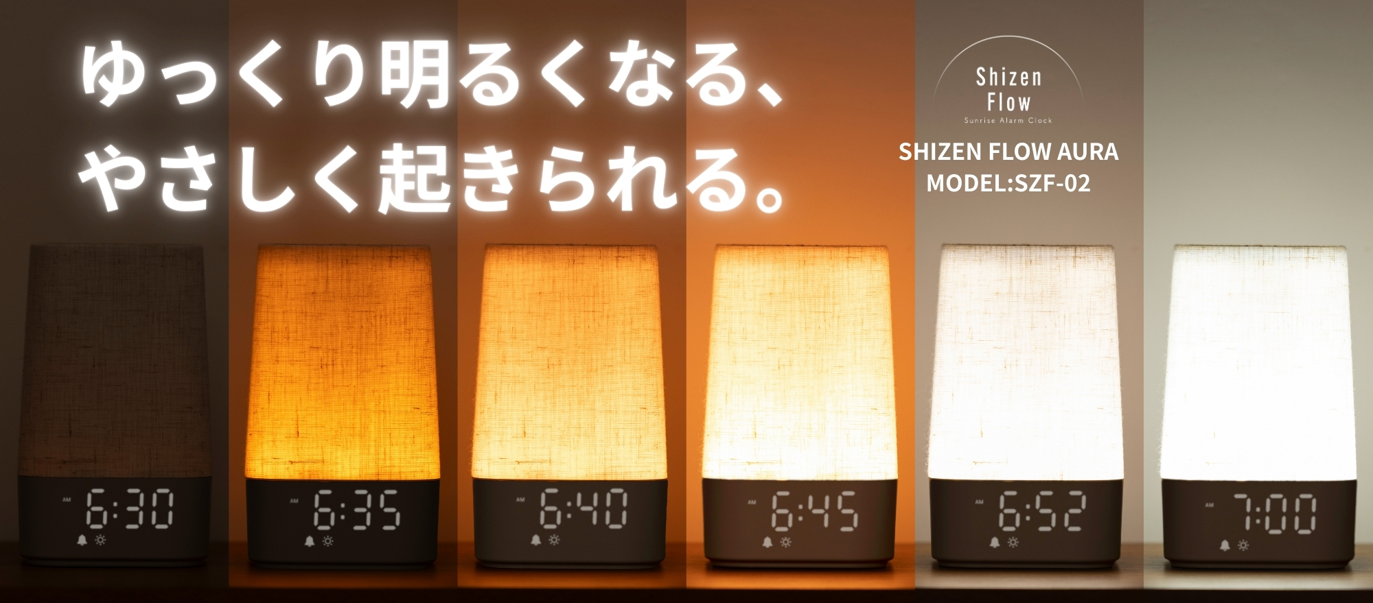 徐々に明るくなる朝日のような光で、無理なく自然に目覚める。睡眠と目覚め、両方を整える新しい目覚まし時計です。