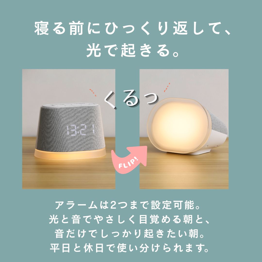 普通の目覚まし時計と何が違いますか?光と自然音で徐々に体を覚醒へ導きます。さらに夜はライトと多彩なサウンドで睡眠改善をサポートする点が大きな違いです。